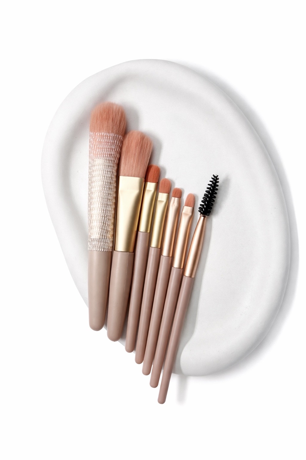موهای براشها از الیاف مصنوعی نرم و باکیفیت ساخته شدهاند که بدون ایجاد حساسیت، مواد آرایشی را بهصورت یکنواخت روی پوست پخش میکنند. طراحی خوشدست و وزن مناسب دستهها، کنترل بهتر و دقت بالاتر هنگام آرایش را به همراه دارد.