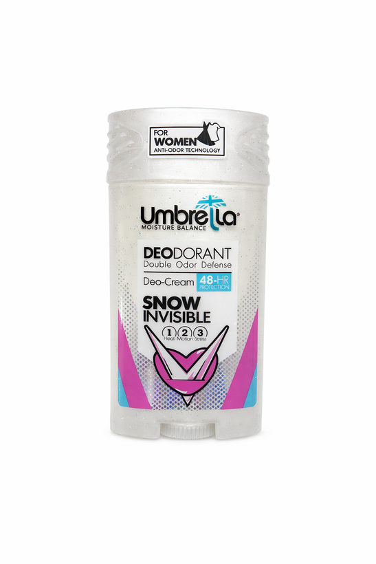 کرم دئودورانت زنانه Umbrella Snow Invisible با بهرهگیری از فناوری پیشرفته Double Odor Defense، محافظتی قدرتمند و ماندگار تا ۴۸ ساعت در برابر بوی نامطبوع تعریق ایجاد میکند. این محصول با فرمول Invisible طراحی شده تا بدون ایجاد لک سفید روی لباسهای تیره و بدون بر جای گذاشتن رد زرد روی لباسهای روشن، حس تمیزی و اعتمادبهنفس را در تمام طول روز حفظ کند.